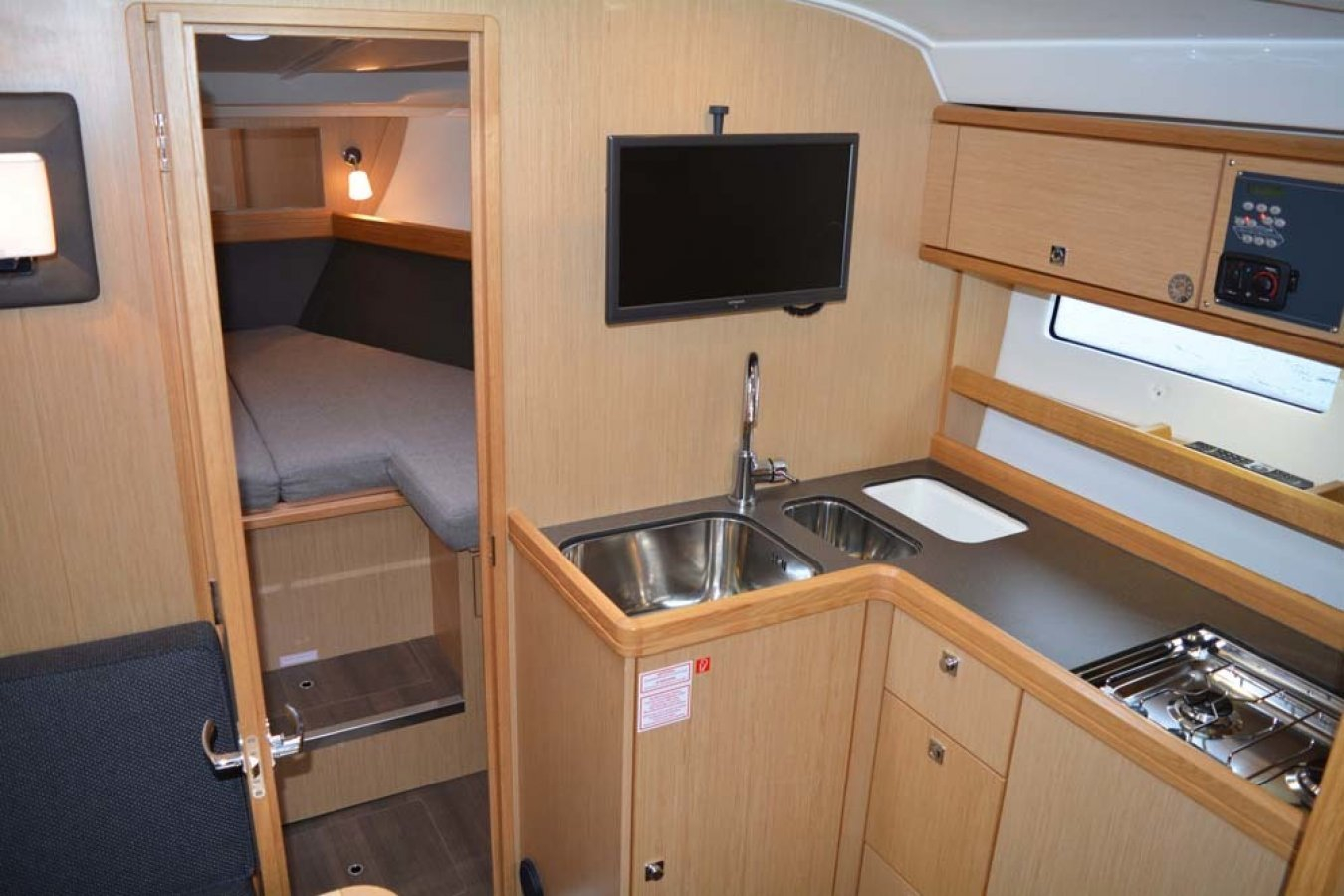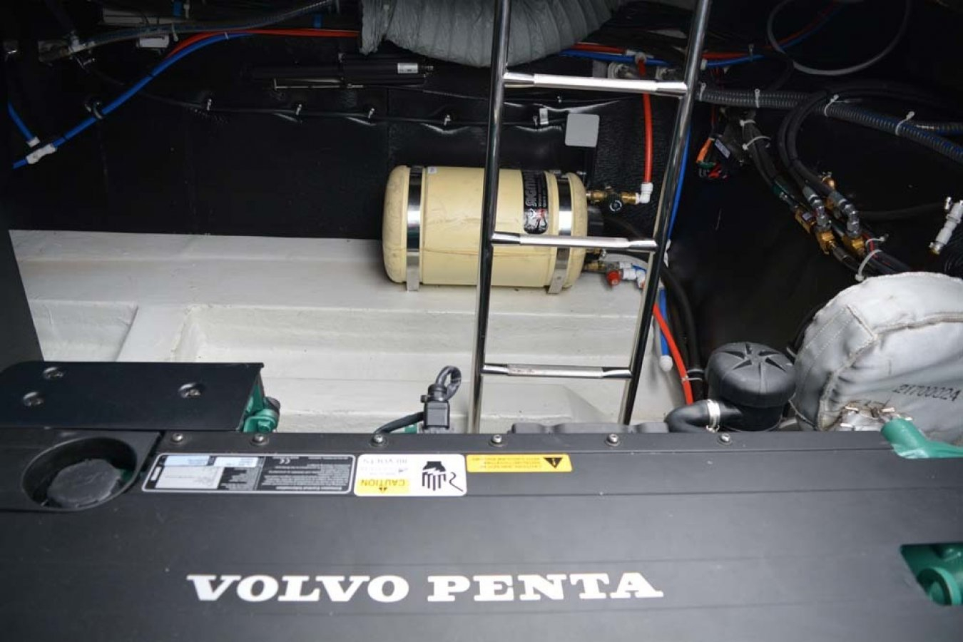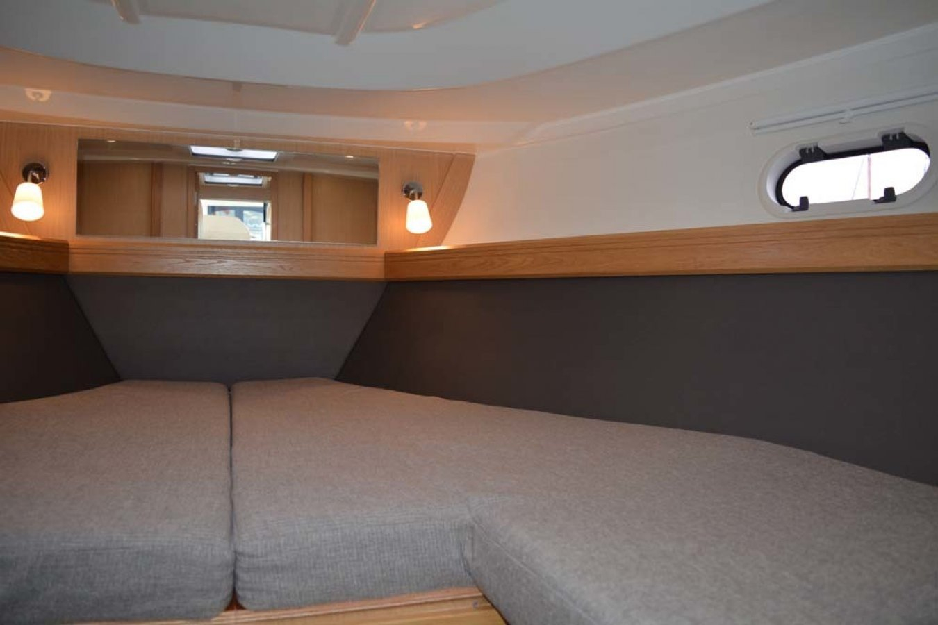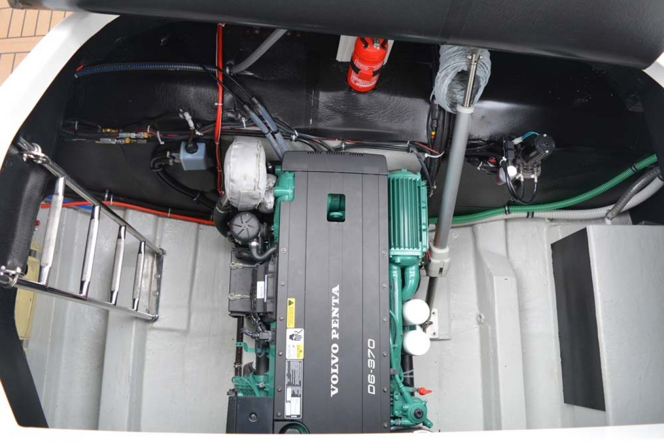 Bavaria Sport 35 in sehr gepflegtem Zustand. 2 Doppelkabinen. Volvo-Penta D6-370 PS Dieselmotor mit nur 575 Std., Duoprop-Antrieb, zusätzlich isolierter Motorraum, Bugstrahler, elektrische Ankerwinsch, verlängerte Badeplattform, luxuriöse „Suntex“-Außenpolsterung, schöne Cockpit-Persenning (teils neue Scheiben 2025), 2x Scheibenwischer mit