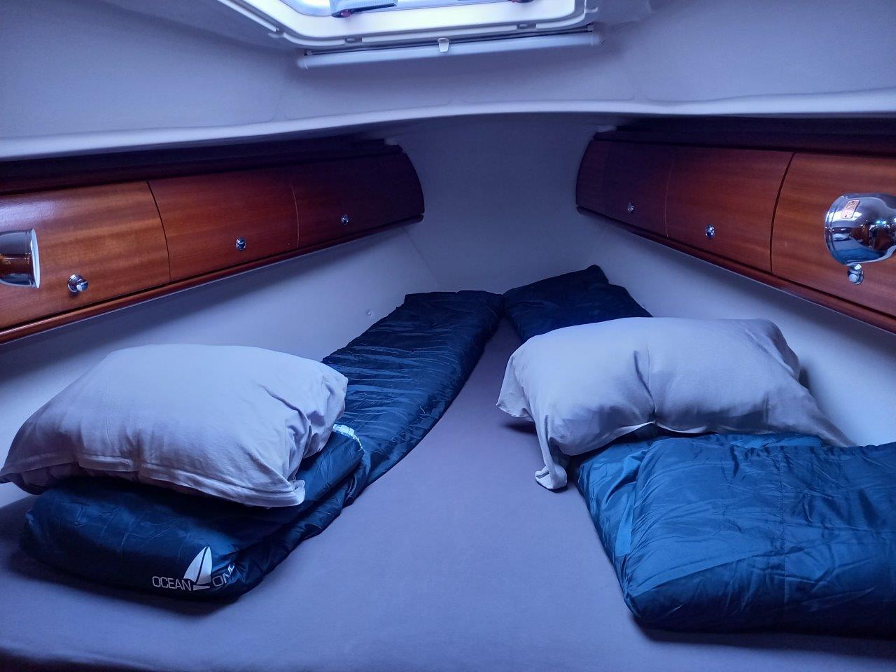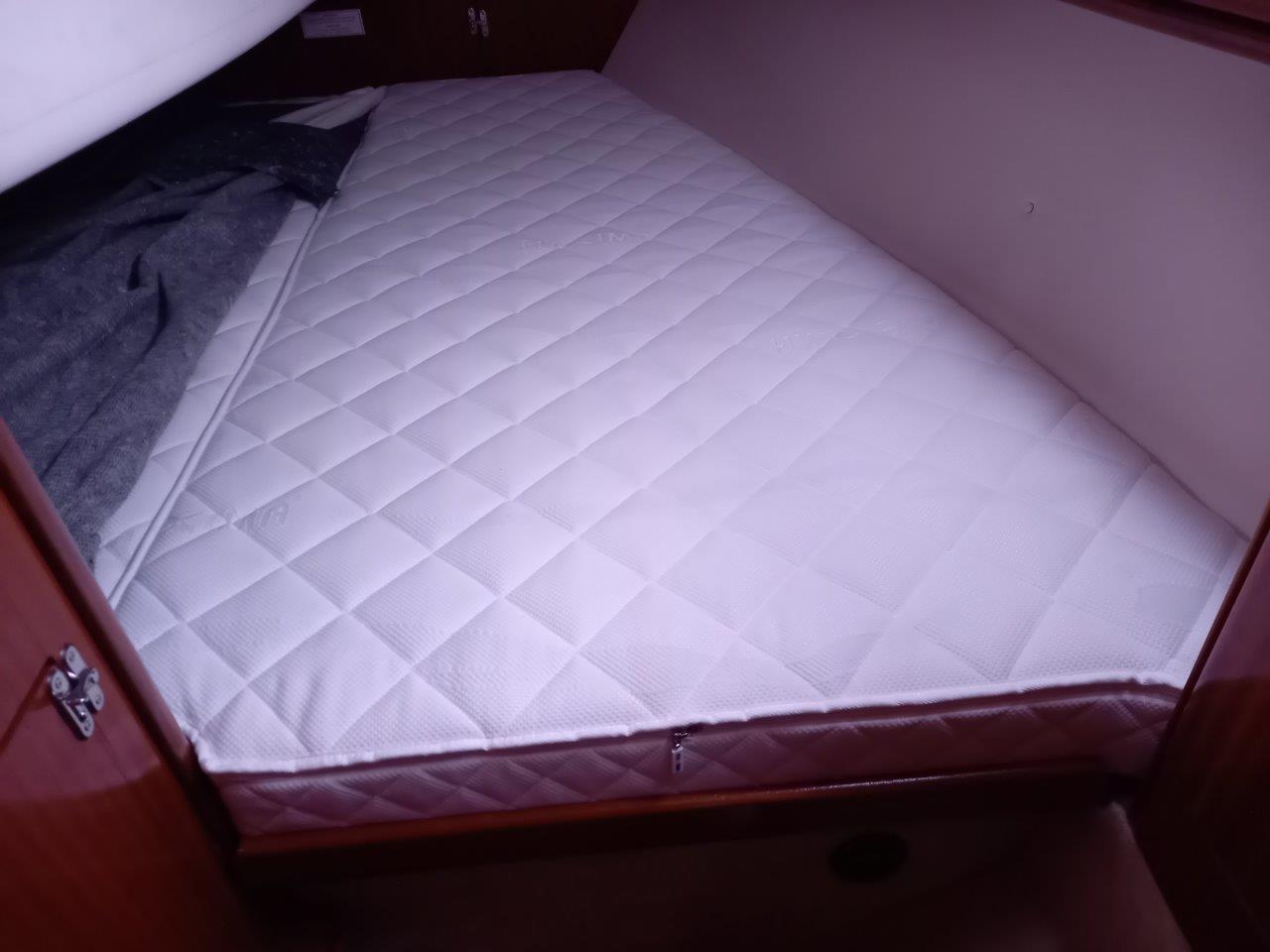 - 2 maßgefertigte Kaltschaummatratzen von Flexima (Flexima Nautic Standard, integriertes Lattenrost, Unterseite mit eingenähtem Gittergewebe) für die Achterkabine (mit Reißverschluss verbindbar), 13 cm hoch (von Fachfirma ausgemessen)