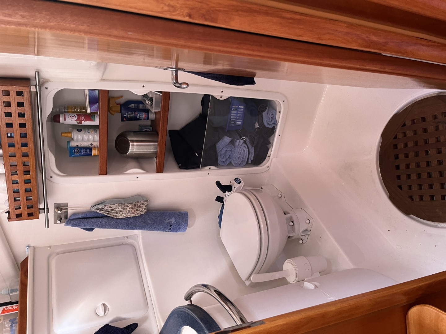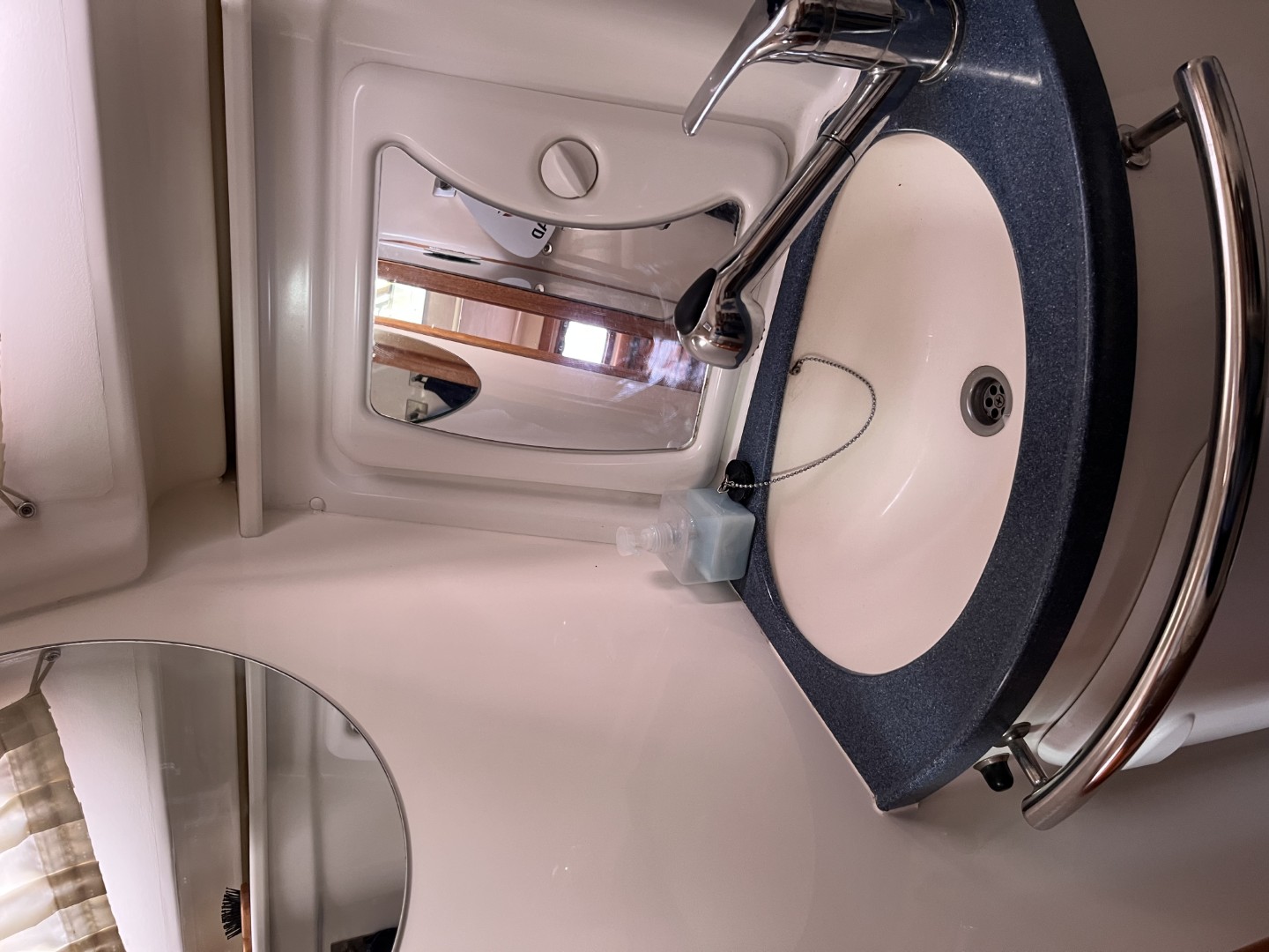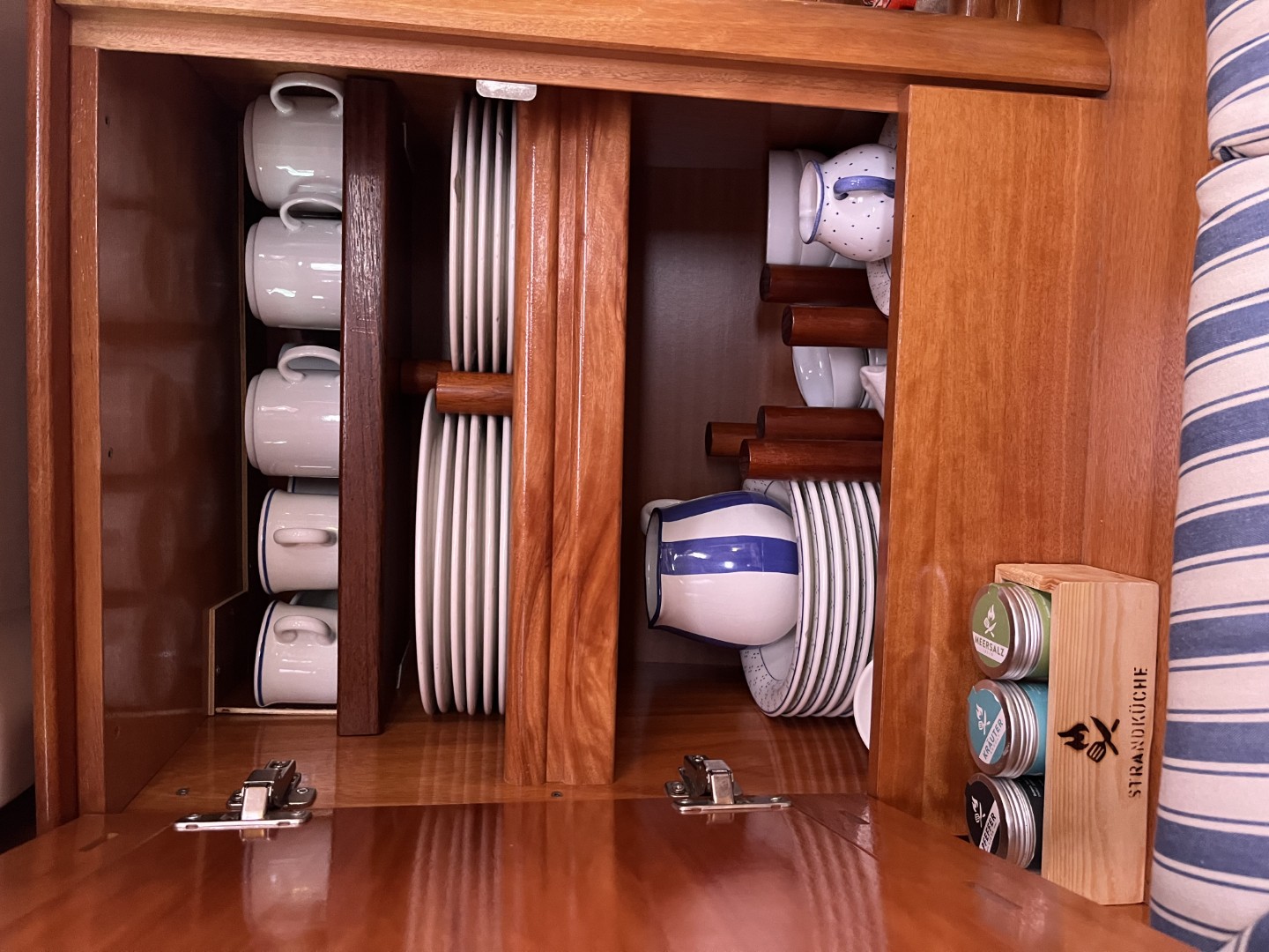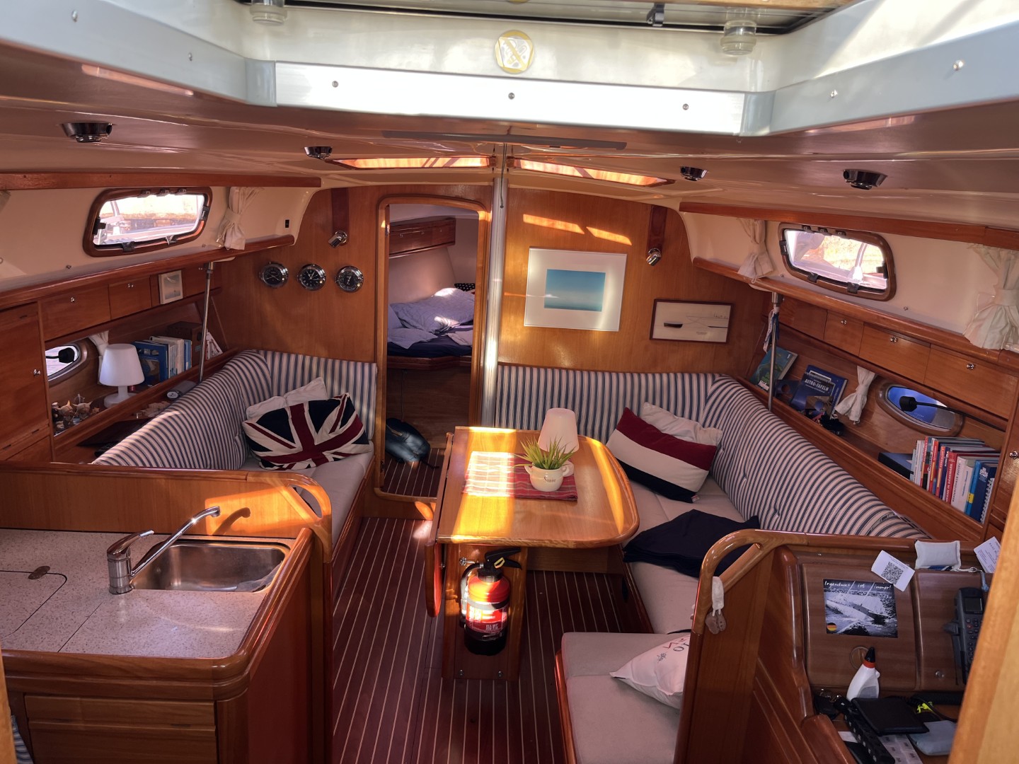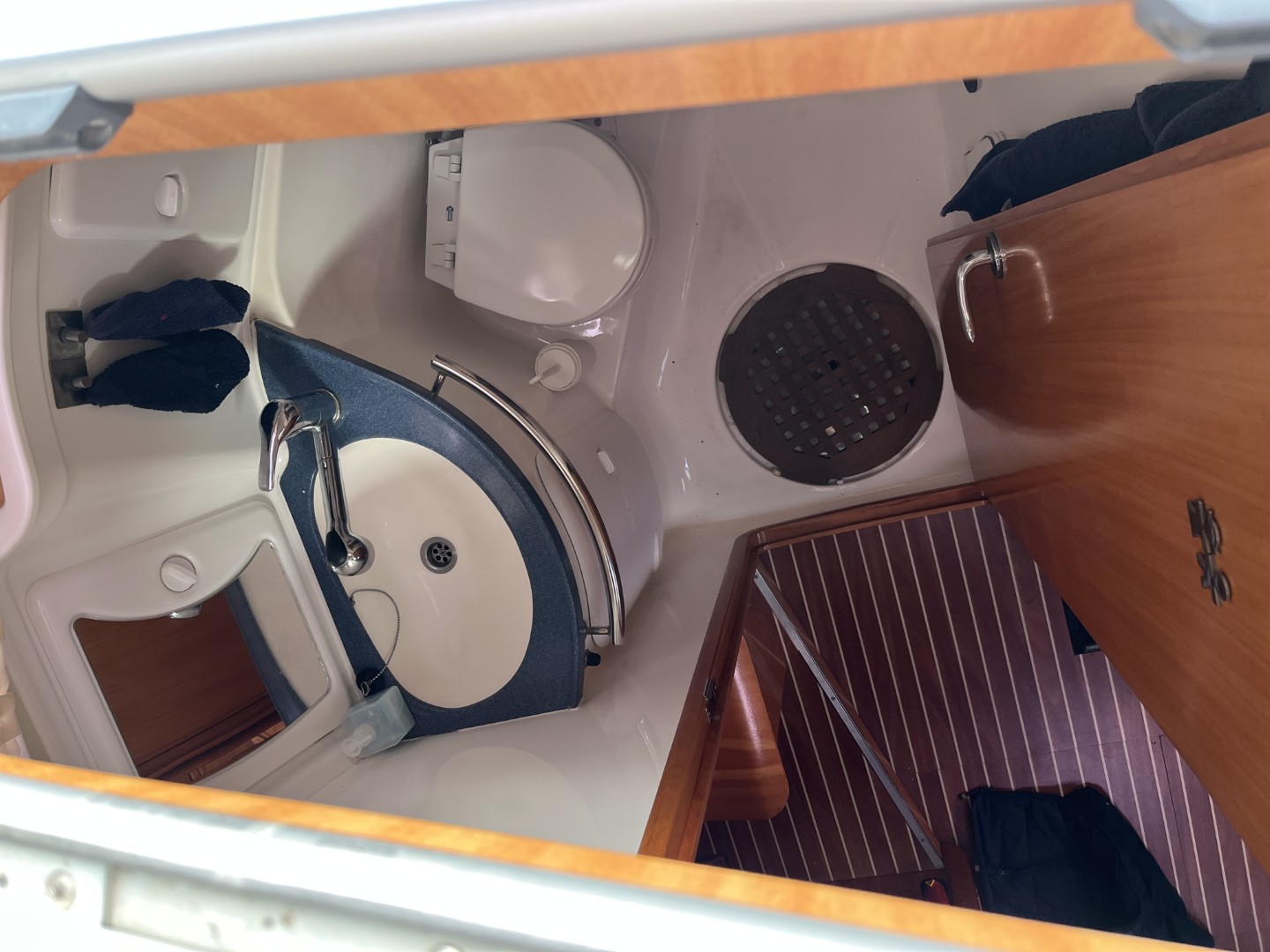 Extra Einbauten im Bad, Zusatzfenster Achterkajüte, Ablagen optimiert, Zusatzbeleuchtung Achterkoje, Naviplatz und Panty. Leselampen mit USB-Anschluss Vorschiff und Achterkoje.