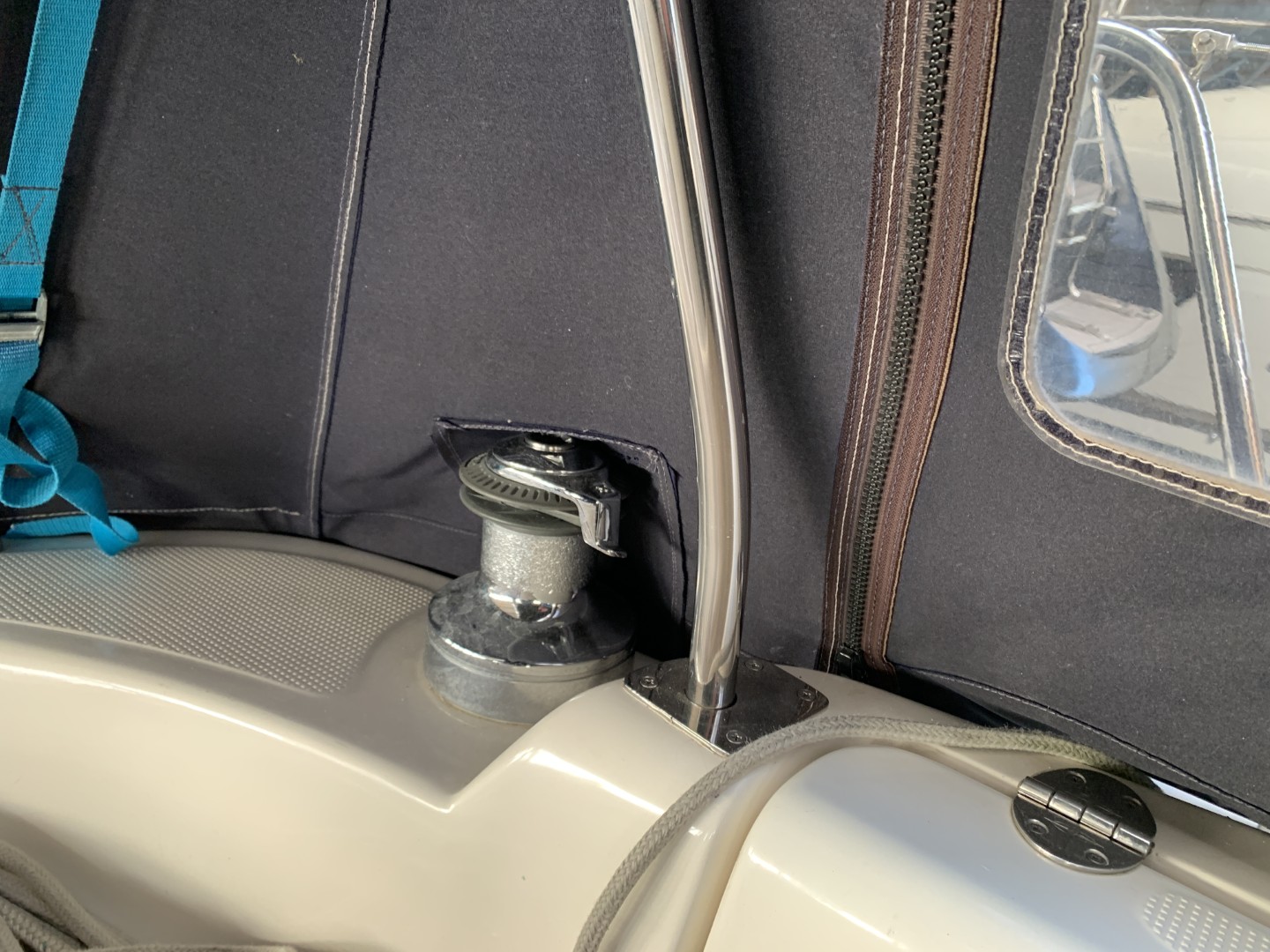 Achterstagspanner Talje, Vorsegelpersenning zum Heißen