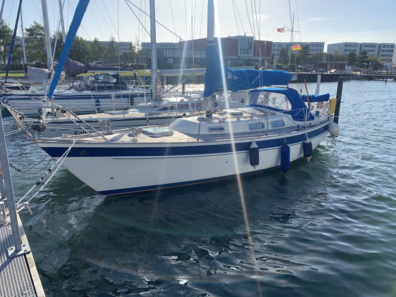 Segelyacht Hallberg-Rassy 29 in sehr gepflegtem Zustand und mit diversen Erneuerungen seit 2018: Teakdeck, Motor, Segel incl. Rollanlage, Sprayhood mit Kuchenbude. LED-Positionsleuchten etc. 2020 erfolgte außerdem die Nachrüstung einer Windfahnen-Selbststeuerung Windpilot Pacific. Version mit Hundekoje. Verkauf aus Zeitmangel. Liegeplatz Sommer und Winter (Halle) auf Fehmarn evtl. zu übernehmen. Innenfotos folgen. Bitte fragen Sie alle Details an.